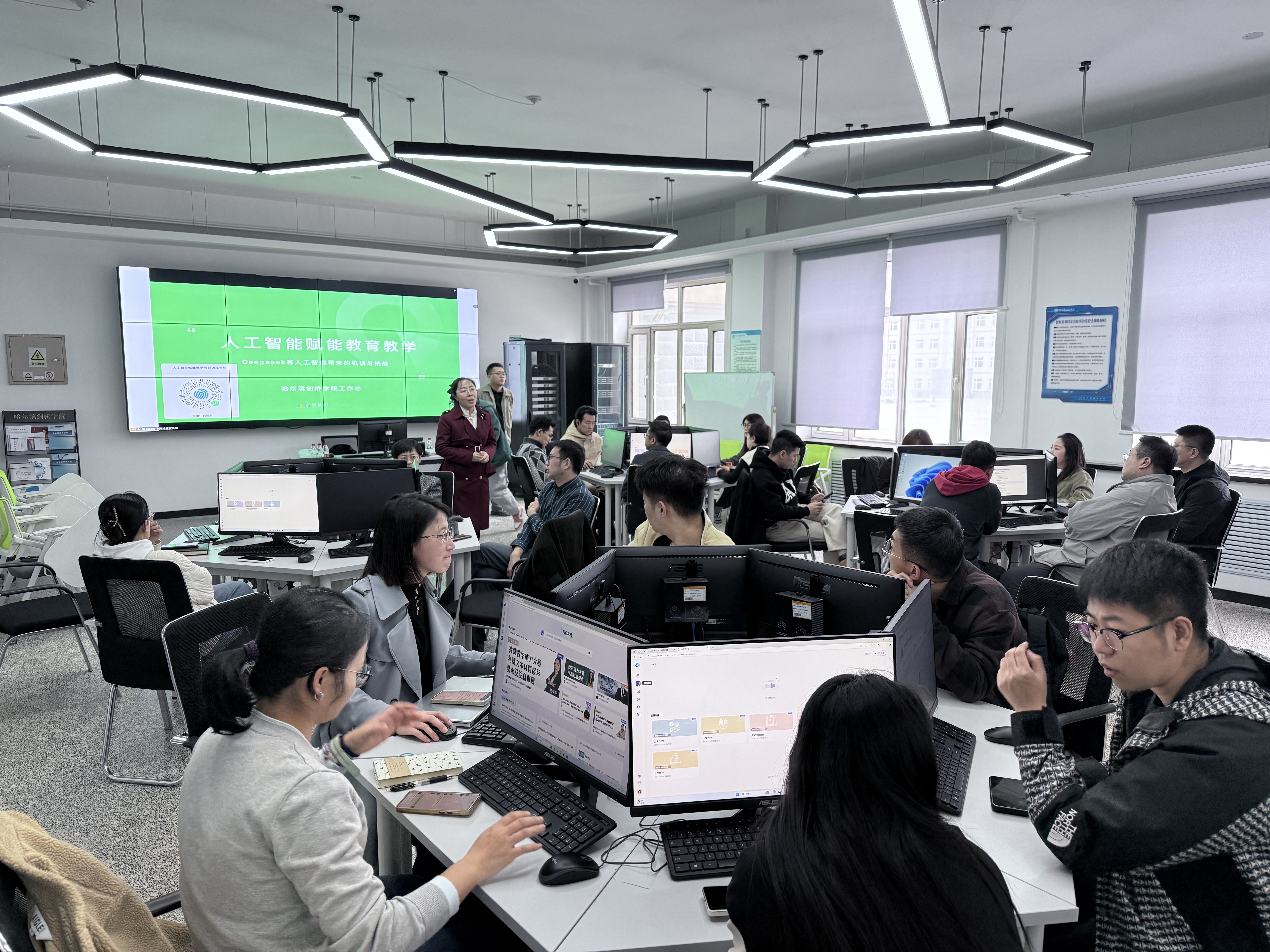 为深入贯彻教育部关于人工智能赋能教育行动的战略部署,推动人工智能技术与教育教学的深度融合,提升教师数字化素养与创新能力,哈尔滨剑桥学院教务处于4月25日在慎思楼202大数据实验室成功举办了主题为“AI助力课程创新——生动、互动、主动&用技术焕发课程生命活力”的专题讲座。讲座由教务处处长宫洁主持,吸引了共计50余名教师参加。