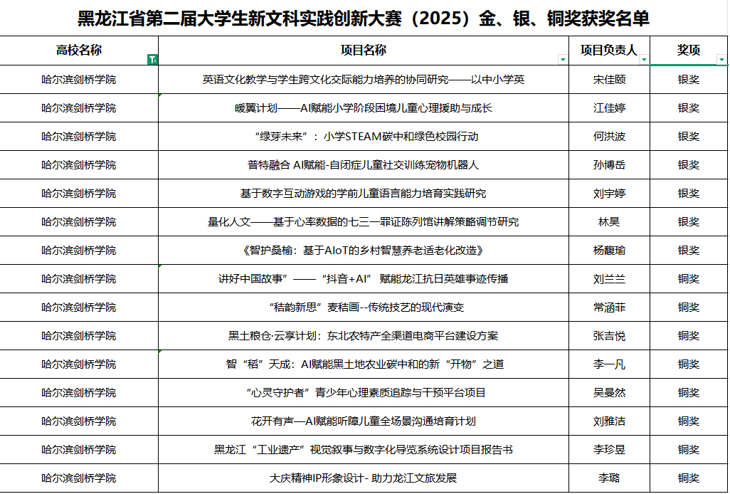 10月12日,备受瞩目的黑龙江省第二届大学生新文科实践创新大赛决赛在哈尔滨师范大学举行。我校学子在本次大赛中斩获省级银奖7项,铜奖8项,8支项目团队晋级国赛。