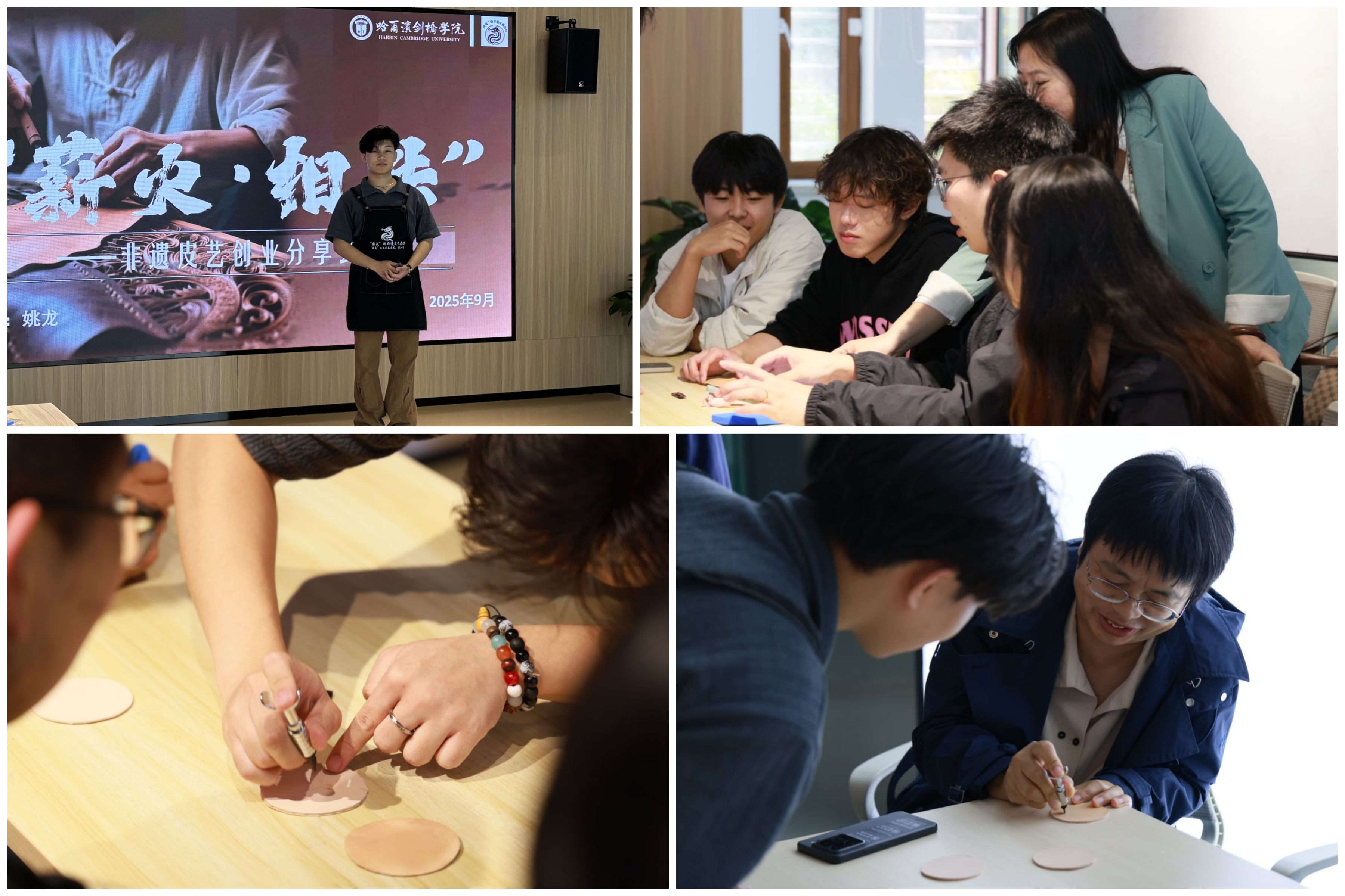皮艺工坊则弥漫着浓郁的文化气息与创业热度。主讲人姚龙同学从皮艺的历史源流讲起,梳理其在不同时代的文化内涵,并结合现代审美,提出皮艺创作的创新方向。他以自身为例,讲述如何将兴趣“打磨”成创业项目,为在场同学提供了“从热爱到事业”的真实范本。